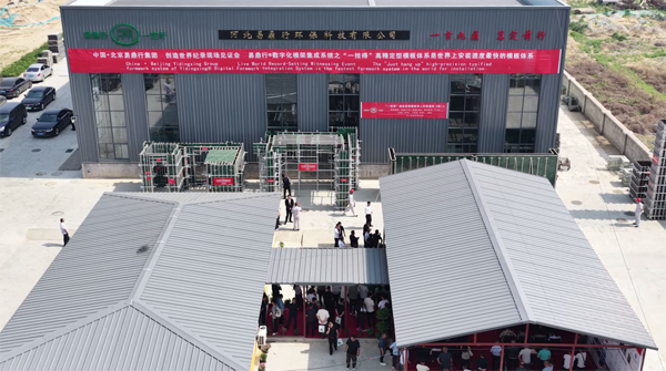 世界紀錄保持者: 中國?北京易鼎行集團易鼎行?數(shù)字化模架集成系統(tǒng)之“一掛得”高精定型模板體系。